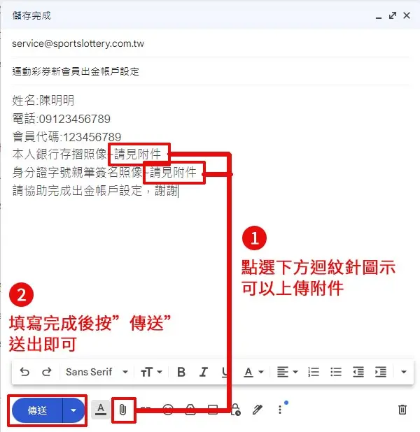 收件人: [email protected] 信件標題: 運動彩券新會員出金帳戶設定